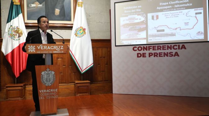 El día de hoy, hasta las 18:00 horas, se lleva a cabo la exhibición de autos y convivencia con pilotos; el jueves 13 de octubre, la prueba clasificatoria en el tramo carretero Apazapan-Jalcomulco, donde los vehículos alcanzarán una velocidad de hasta 260 km/h, y a las 17:00 horas se llevará a cabo la salida ceremonial desde la Macro Plaza del Malecón de Veracruz.