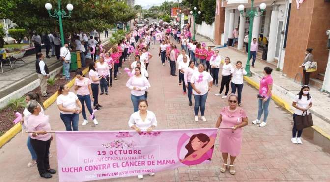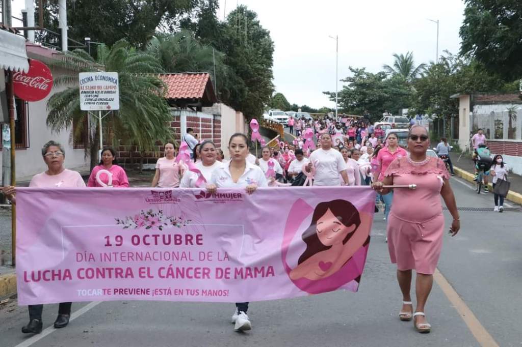 En conmemoración por el 19 de octubre, Día Internacional de la Lucha contra el Cáncer de Mama, se llevó a cabo una marcha desde la localidad de El Ciruelo hasta la Cabecera Municipal, convocada por el Instituto Municipal de las Mujeres (IMMUJER) en coordinación con el sistema DIF Municipal de Úrsulo Galván, que contó con una gran participación del personal femenino que labora en el H. Ayuntamiento y las alumnas del Centro de Bachillerato Tecnológico Agropecuario (CBTA) número 17.