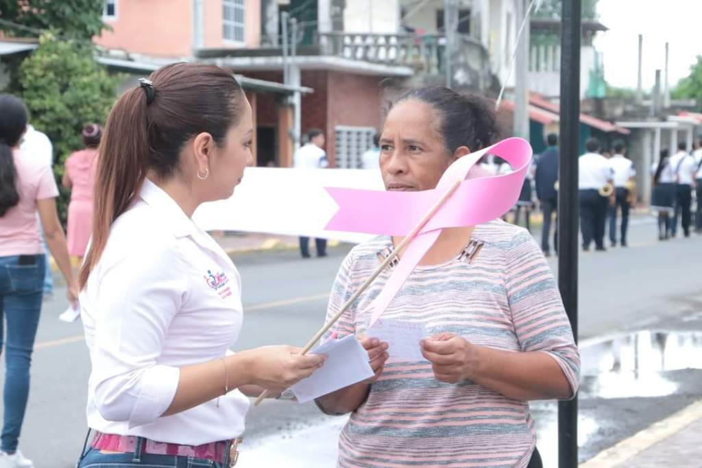 Durante la marcha, la titular del IMMUJER, Claudia Utrera Ramírez y la presidenta del DIF Municipal, Lic. Vianney Hernández Vizuet entregaron folletos informativos a la ciudadanía con las medidas preventivas de auto exploración que se deben realizar constantemente para detectar esta terrible enfermedad, así como los posibles síntomas de la misma, recordando que lamentable, el cáncer de mama es la causa de muerte número uno en mujeres a nivel mundial, padecimiento que también afecta a los hombres.