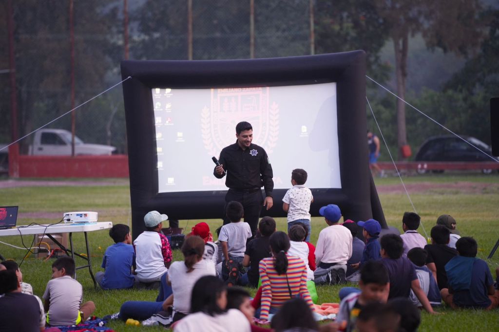 “Proyección para la Prevención” incluyó la participación de los K9 y sus elementos caninos para mostrar las habilidades de sus perros entrenados a las familias presentes, quienes también disfrutaron de varios cortometrajes en los que se ejemplifican acciones cotidianas para fomentar el trabajo y la constancia. Al final, se proyectó una película para toda la comunidad.