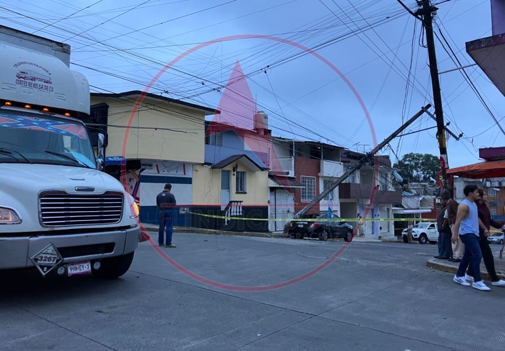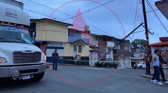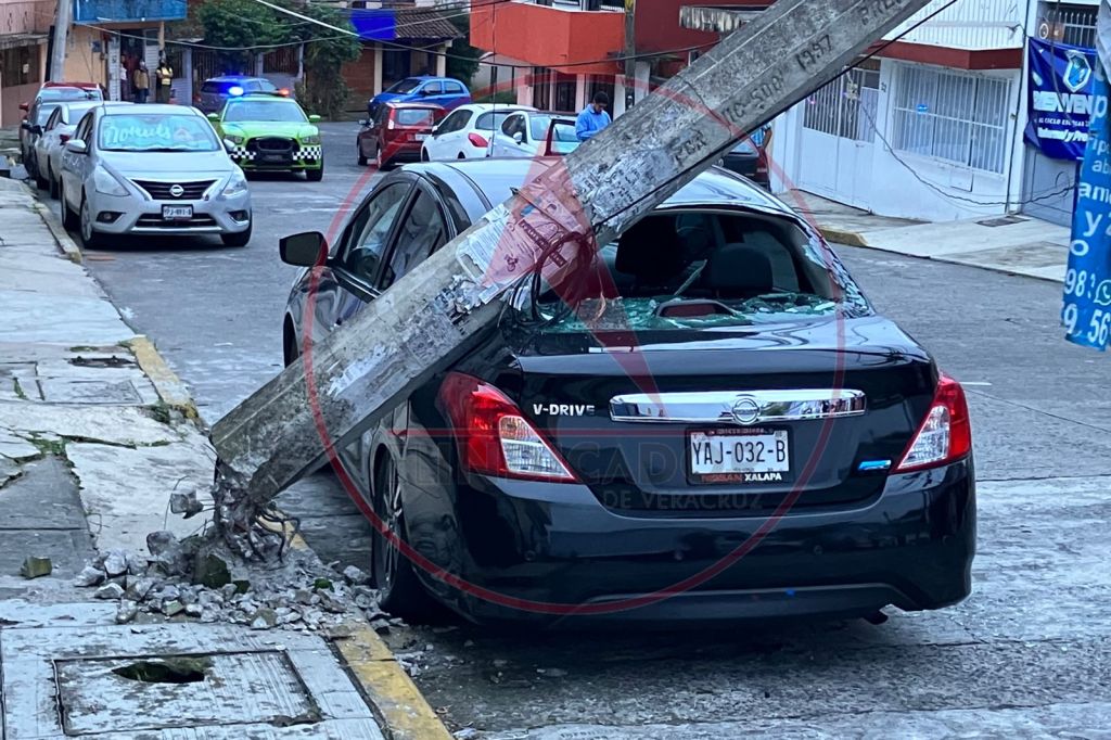 Un torton derribó un poste de alumbrado público luego de atorarse en el cableado de la calle Veracruz, en la Unidad Habitacional Infonavit Pomona; el poste cayó en un automóvil que se encontraba estacionado.