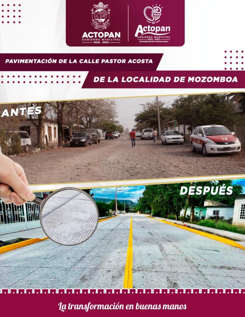 Mozomboa ahora cuenta con dos calles pavimentadas con concreto hidráulico, mismas que tenían años en el olvido, se trata de la calle Pastor Acosta y la calle Crisanta Vela