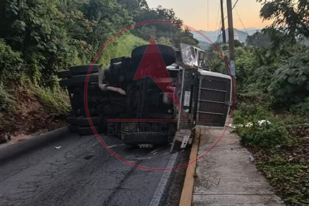 Un camión que transportaba grava, se volcó cuando circulaba por la carretera Xalapa – Misantla, a la altura del municipio de Jilotepec; no se reportaron personas lesionadas.