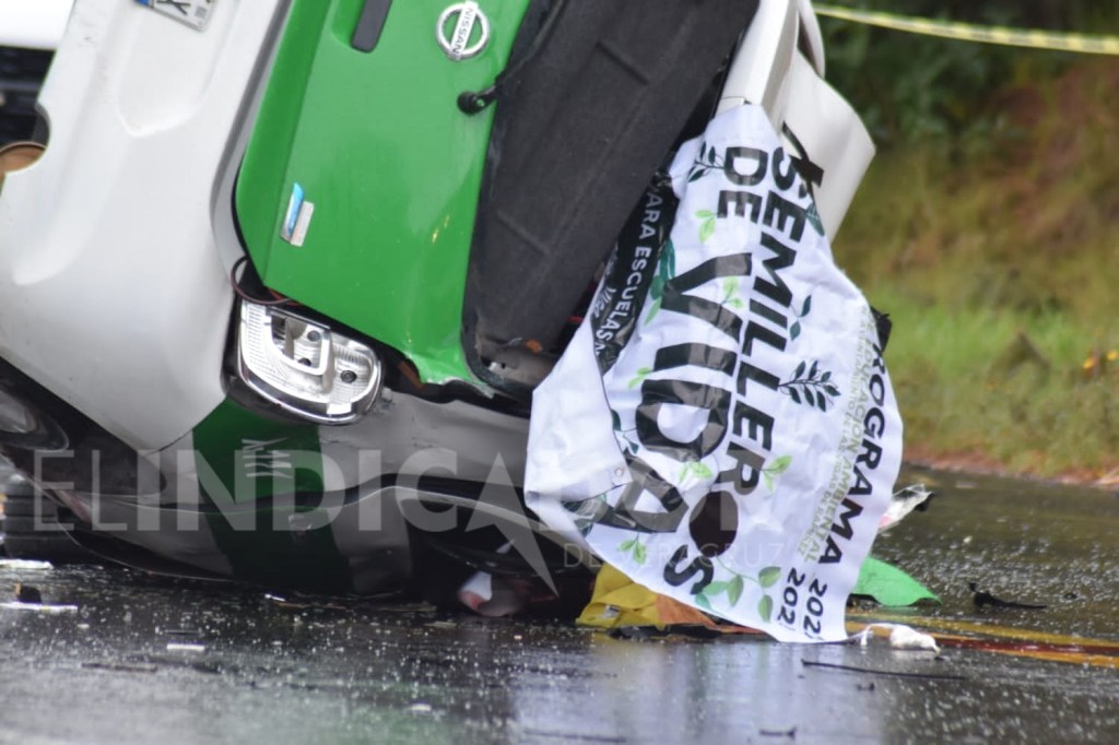 El auto color negro quedó a un costado de la carretera, mientras que el taxi dio varias vueltas terminando volcado sobre la carpeta asfáltica. En el interior viajaba un joven de 28 años de edad quien perdiera la vida al quedar prensado entre la unidad de alquiler y el asfalto.