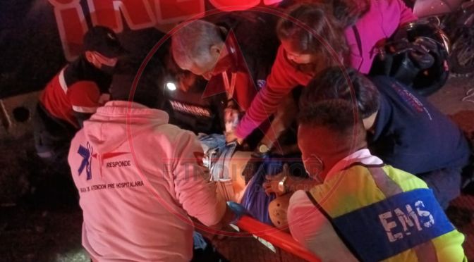 Se informó que fue el vehículo particular el que cruzó la vialidad presuntamente sin tomar las precauciones pertinentes, por lo que chocó la moto, en la que viajaban dos personas.