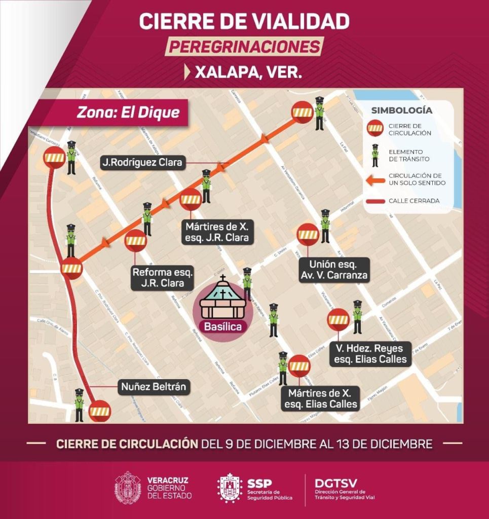 También habrá cierres en calles como Reforma, Unión, Elías Calles, Mártires de Xalapa, entre otras.