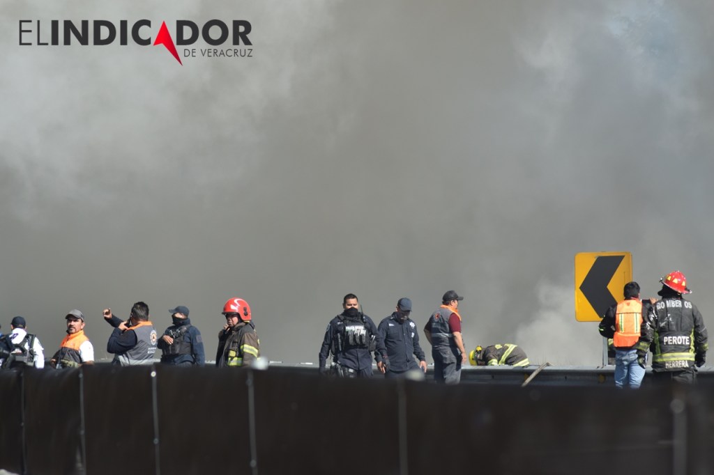En el combate del siniestro participó Bomberos de Perote y Xalapa, Protección Civil Estatal, Pipas Ceballos y Protección Civil Municipal de la capital. También elementos de Tránsito del Estado y Secretaría de Seguridad Pública.