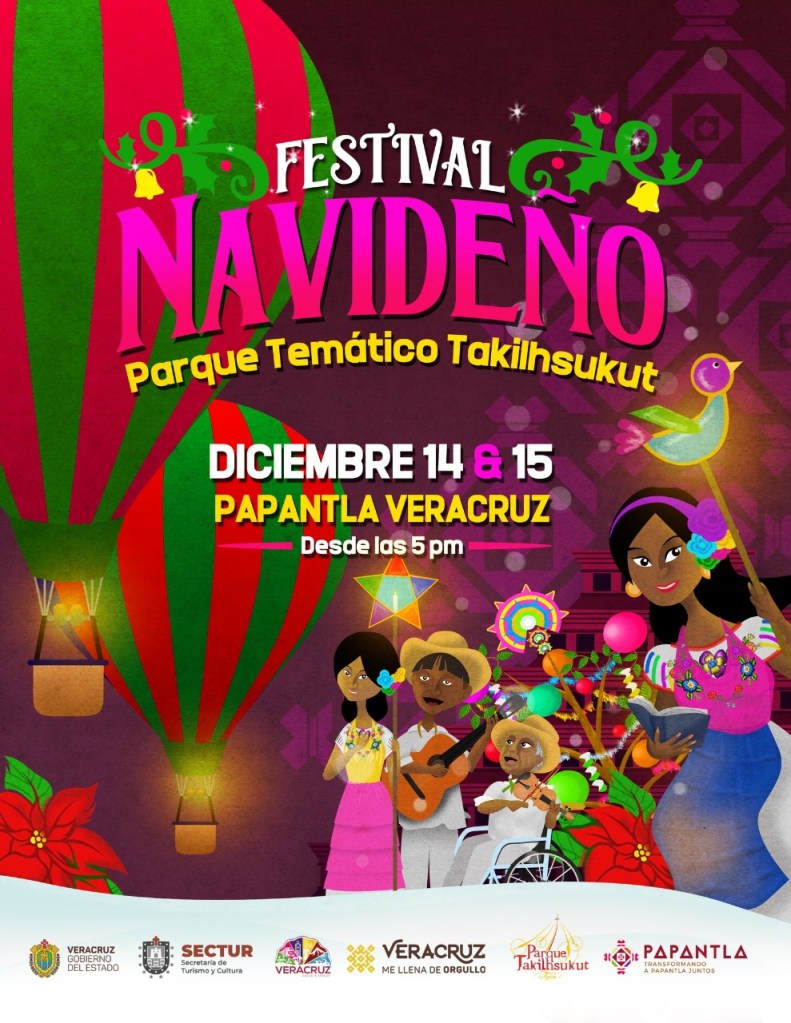 Al respecto, el subsecretario de Promoción Turística, Héctor Aguilera Lira, invitó a los veracruzanos a acudir al Festival Navideño en el parque Takilhsukut, en el municipio de Papantla, donde habrá vuelo en globos aerostáticos de Teotihuacán.