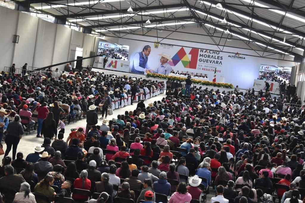 El municipio de Altotonga hoy 16 diciembre se vistió de fiesta recibiendo a más de 3 mil 500 asistentes de las diversas localidades que comprenden este hermoso municipio. En Sesión Solenme de Cabildo, acompañado de la Ing. Laura Santillán Moreno, Sindica Única; Lic. Fernando de la Luz Bello Morín, Regidor Primero; Lic. Omar Galindo Justo, Regidor Segundo; C. Ma. Luisa González Méndez, Regidora Tercera; C. Liborio Arcos Rosas, Regidor Cuarto; C. Ma. de Lourdes Díaz García Regidora Quinta y Lic. Luis Guillermo Guevara Sarabia Secretario del Ayuntamiento, se aprobó el primer informe de resultados, dónde se presentaron a la ciudadanía los trabajos que se han generado este primer año en los rubros comprendidos en el plan municipal.
