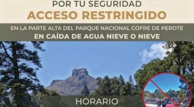 A través de las redes sociales, el ayuntamiento de Perote precisó Por seguridad, queda restringido el acceso a la parte alta del Parque Nacional Cofre de Perote por entrada del #FrenteFrío 19 y también en caso de caída de agua nieve o nieve. 🌨️».