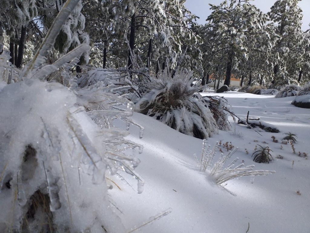 Perote Ver.- El enlace regional de Protección Civil de Perote Miguel Ángel Olivares argumentó que de acuerdo con pobladores de las faldas del Cofre de Perote, la tarde de este domingo 25 de diciembre, se registró la caída de nieve en las partes altas de la montaña.