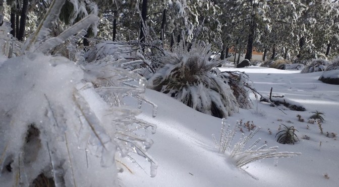 Perote Ver.- El enlace regional de Protección Civil de Perote Miguel Ángel Olivares argumentó que de acuerdo con pobladores de las faldas del Cofre de Perote, la tarde de este domingo 25 de diciembre, se registró la caída de nieve en las partes altas de la montaña.