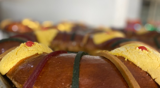Las frutas secas cristalizadas que adornan el pan, simbolizan las joyas incrustadas en las coronas de los Reyes Magos, el muñeco escondido, representa al Niño Jesús.