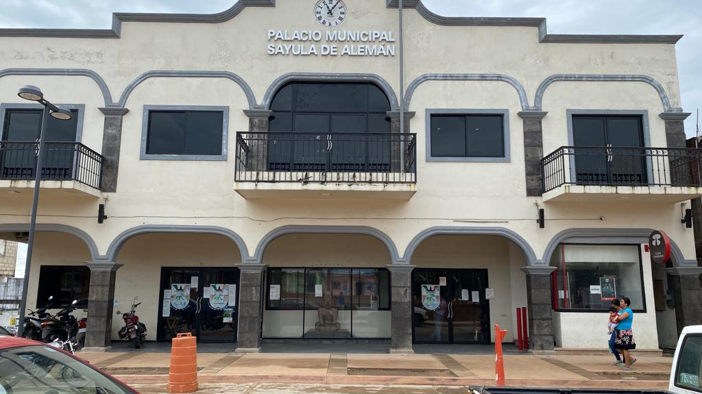 Trabajadores del ayuntamiento de Sayula de Alemán, iniciaron un paro de brazos caídos, debido a que no les han pagado sus quincenas.