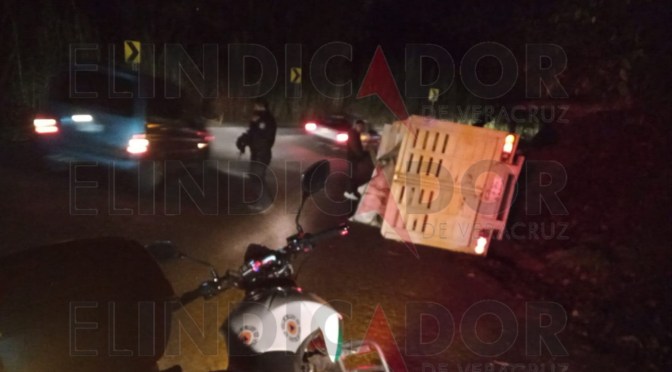 La noche de este sábado, se volcó una camioneta cuando circulaba por la carretera Xalapa – Misantla, a la altura de la localidad de El Esquilón, en el municipio de Jilotepec.