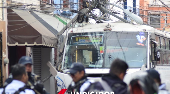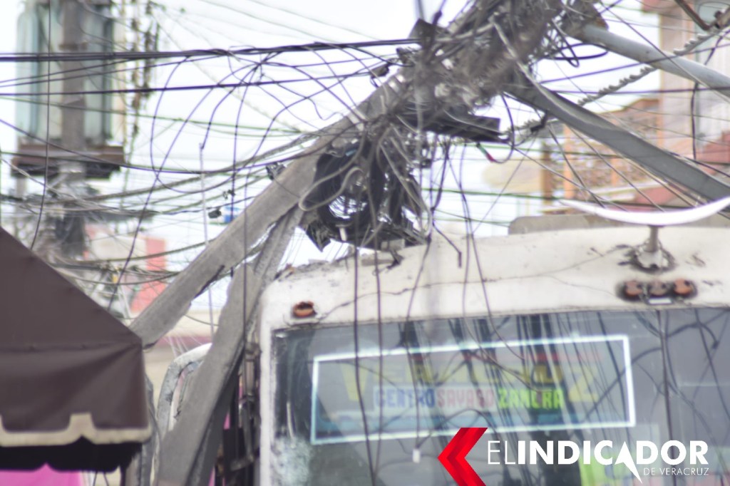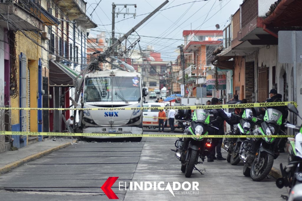Esta mañana, un autobús del Servicio Urbano de Xalapa (SUX) se impactó con un poste cuando circulaba por la calle Melchor Ocampo en el centro de Xalapa.