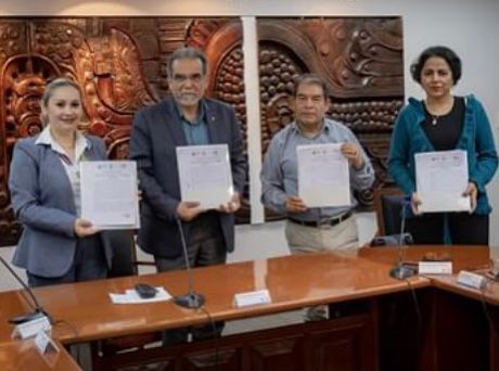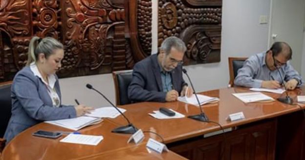 El acto tuvo lugar en la Sala de Juntas de Rectoría, sitio donde se llevó a cabo la firma del convenio entre el rector, Martín Aguilar Sánchez, y el secretario general del SETSUV, Juan Mendoza Gutiérrez.