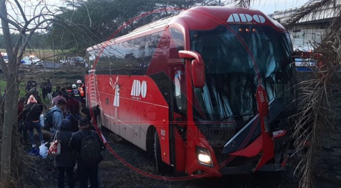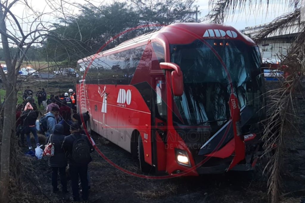 Un autobús de la línea ADO, se salió del camino cuando circulaba por la carretera Xalapa – Veracruz.