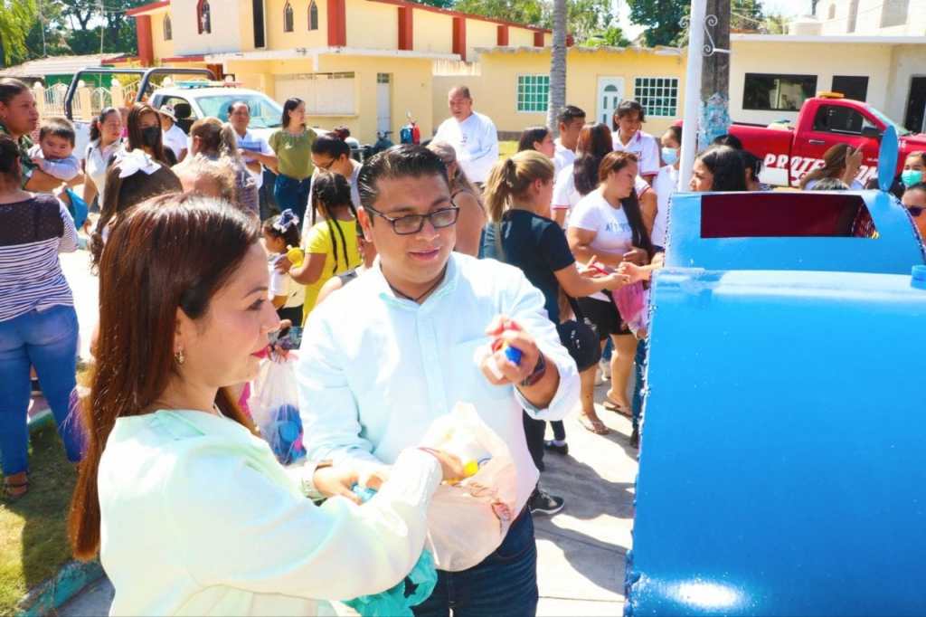 -Inauguran contenedor de corazón para recaudar tapitas en Jareros, es el octavo en el municipio