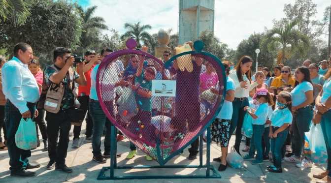 En el marco del Día Internacional de la Lucha Contra el Cáncer, el pasado sábado 4 de febrero, el Sistema Municipal del DIF de Úrsulo Galván Veracruz, encabezado por su presidenta, Lic. Vianney Hernández Vizuet y su director, el Mtro. Iván Álvarez Hernández, llevaron a cabo la inauguración de un nuevo contenedor en forma de corazón para colectar tapitas, en esta ocasión en la localidad de Jareros, con lo que se sigue llevando esperanza a niños con cáncer.