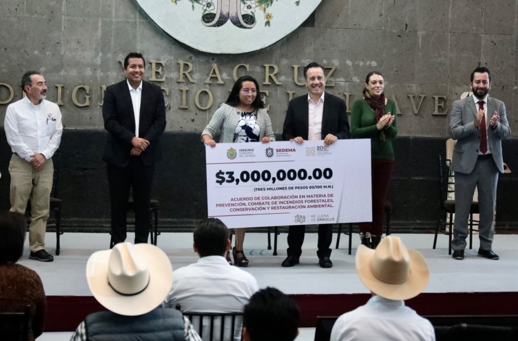 Xalapa, Ver., 08 de febrero de 2023.- En cumplimiento del compromiso adquirido con autoridades municipales en materia de manejo del fuego y reforestación, el gobernador Cuitláhuac García Jiménez entregó recursos especiales a 23 ayuntamientos que lograron resultados trascendentales y que serán de libre disposición, a fin de mejorar la atención y los servicios a la población.