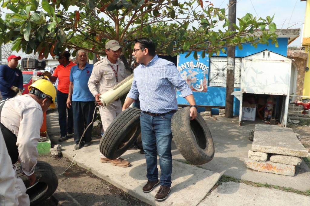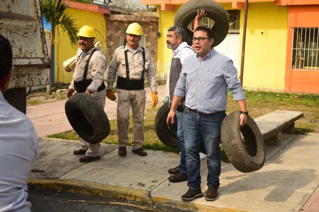En el arranque de la eliminación masiva de criaderos, se contó con la coordinación con los enlaces de promoción de la salud de la jurisdicción sanitaria y los encargados del área de vectores se la Secretaría de Salud de Veracruz (Sesver), con quiénes se logró colectar varios cacharros y llantas.