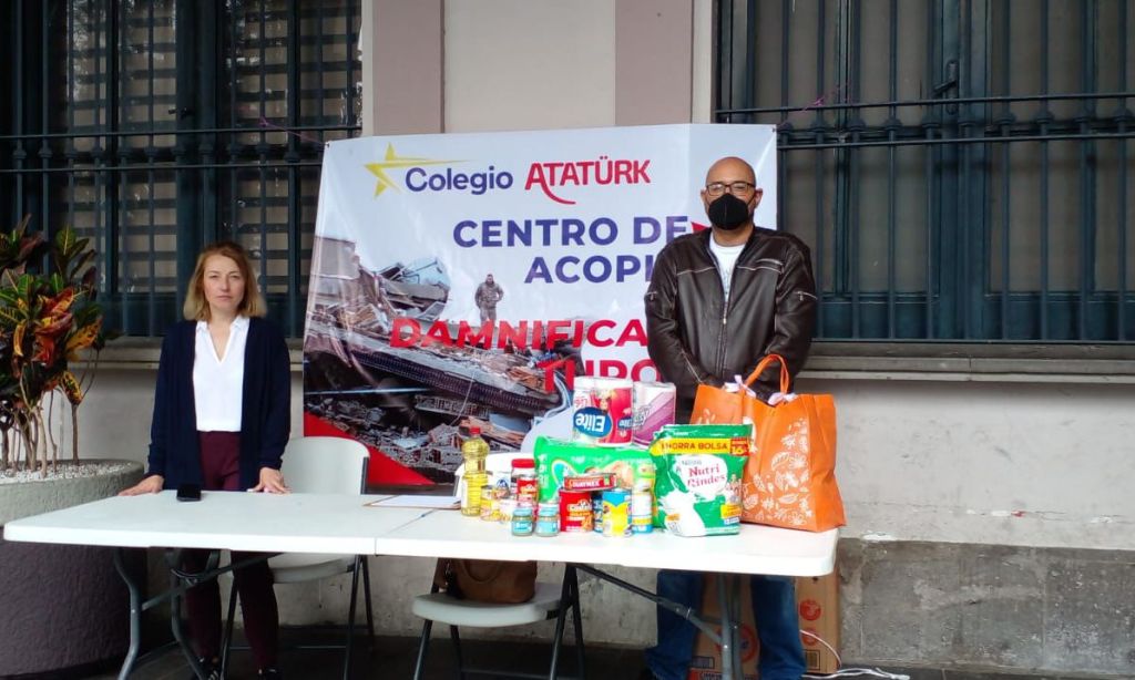 El Colegio Atatürk, instaló un centro de acopio afuera del Palacio Municipal de Xalapa, donde estarán recibiendo donaciones para los afectados por el terremoto registrado en Turquía y Siria, el pasado lunes.