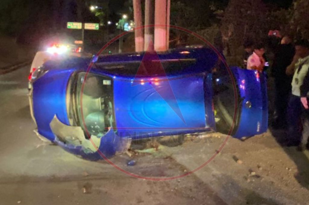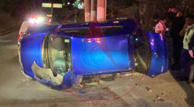 El automóvil quedó “de lado” sostenido por un poste ubicado en una de las banquetas de la avenida.