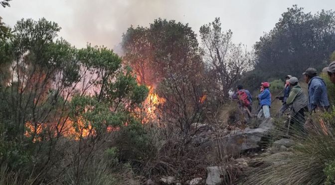 En el paraje La Puerta del Soplante, se reporta un 65 por ciento de control y un 40 por ciento de liquidación; no se reportan personas lesionadas ni representan riesgo a la población.