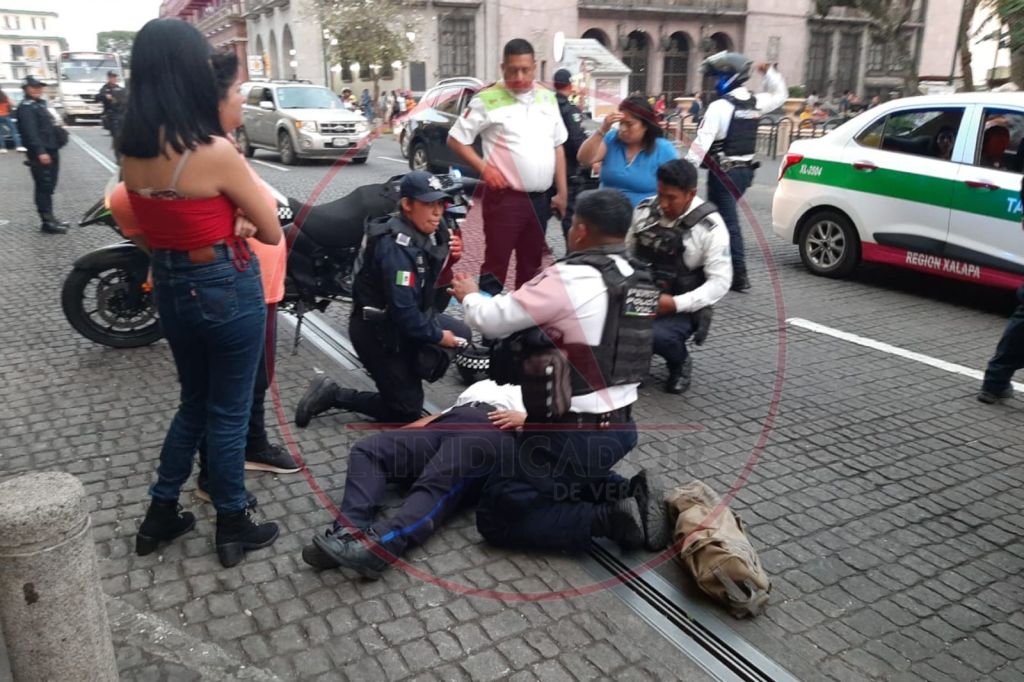 Una agente de tránsito fue atropellada por el conductor de una motocicleta la tarde de este jueves, en la zona centro de Xalapa.