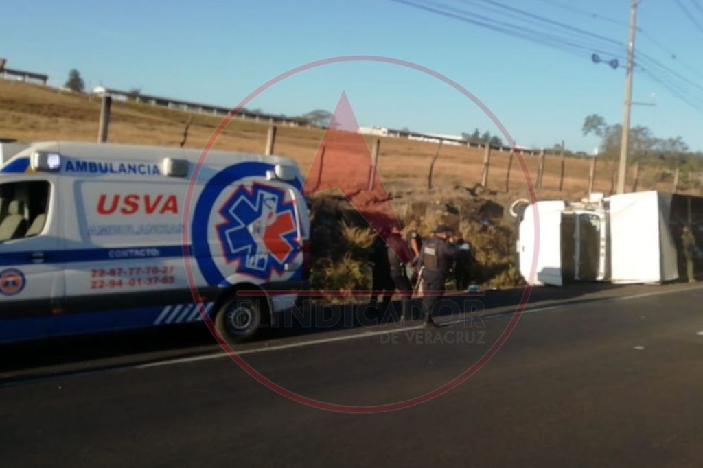 Un camión de carga terminó volcado cuando circulaba por la carretera Xalapa – Veracruz, a la altura de la localidad de El Lencero, en el municipio de Emiliano Zapata.