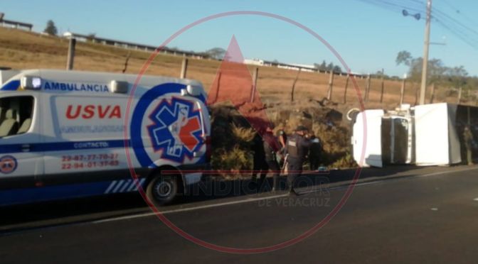 Un camión de carga terminó volcado cuando circulaba por la carretera Xalapa – Veracruz, a la altura de la localidad de El Lencero, en el municipio de Emiliano Zapata.