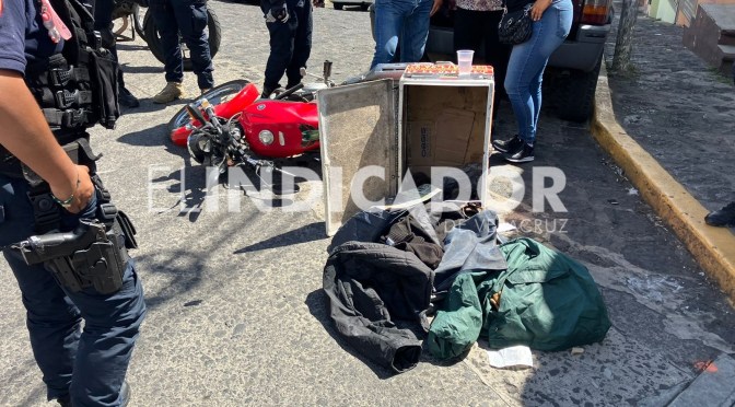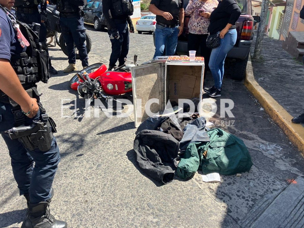 Testigos informaron que el conductor de la moto circulaba por la calle Xalapeños Ilustres con rumbo a la avenida 20 de Noviembre cuando fue impactado por la camioneta.