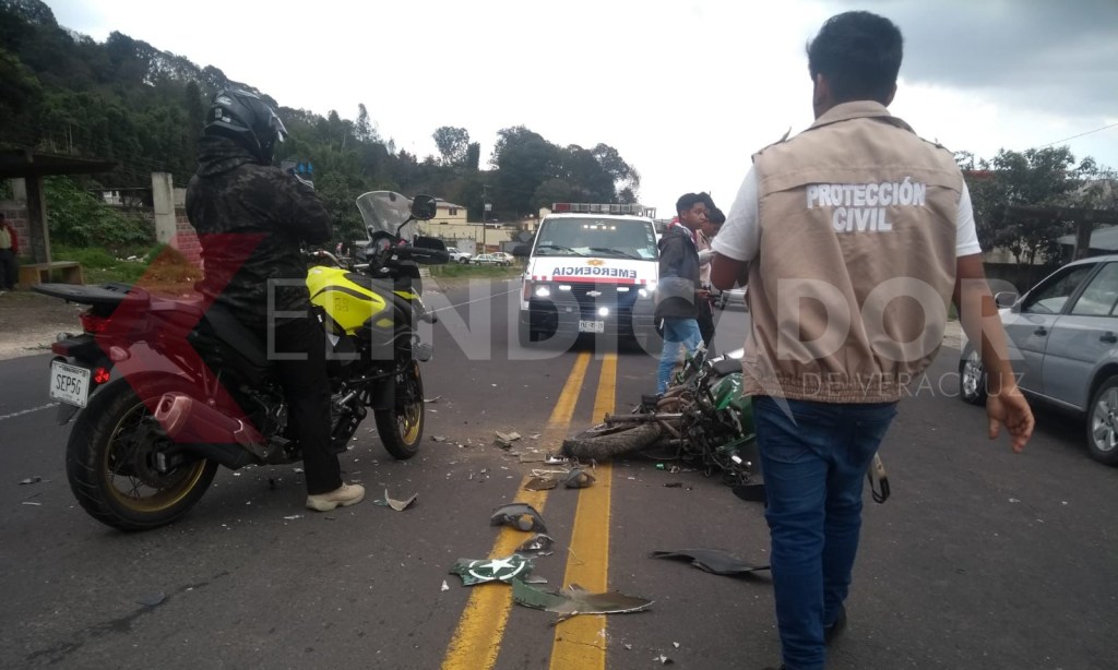 La tarde de este viernes, el conductor de una motocicleta resultó lesionado luego de haber sido impactado por un automóvil, cuando circulaban por la carretera Xalapa – Perote.