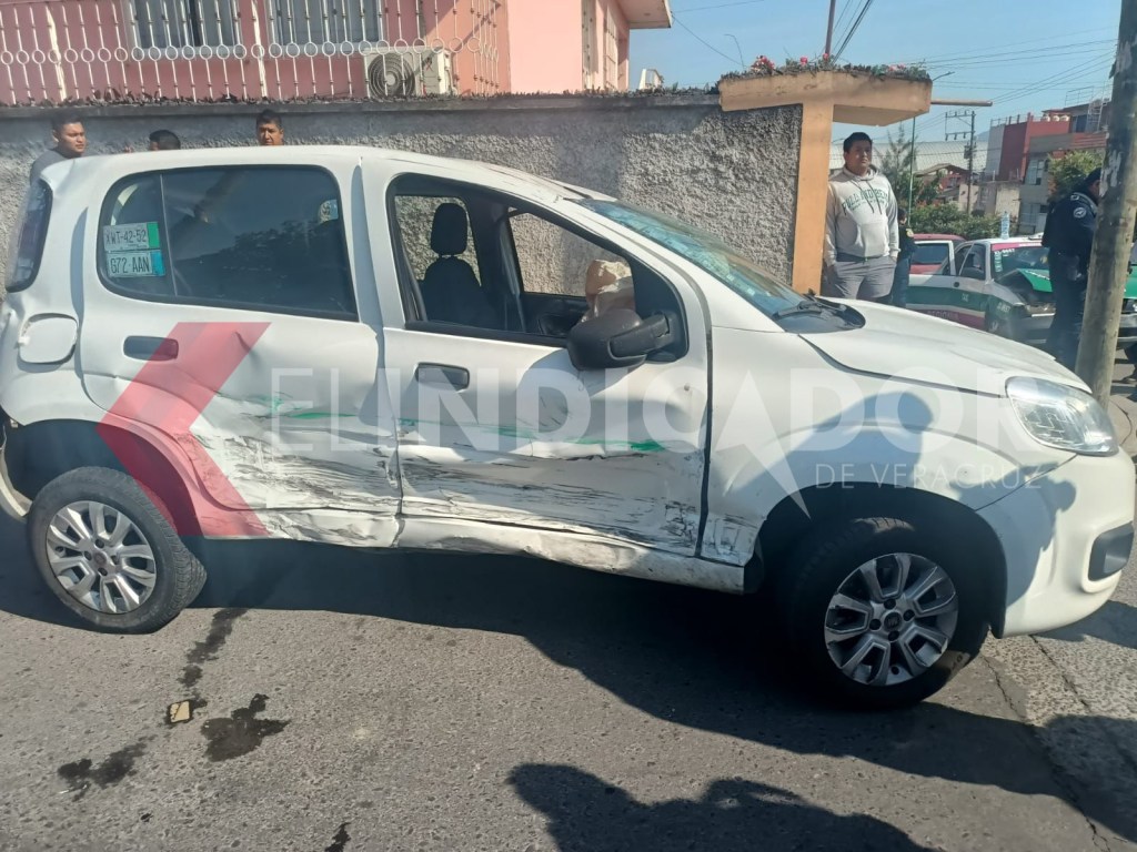 El percance ocurrió en el cruce de las calle Manuel M. Contreras y Leopoldo Kiel de la colonia Rafael Lucio; el automóvil Fiat color blanco transitaba por Manuel M. Contreras, cuando fue chocado por el taxi XL-9657.