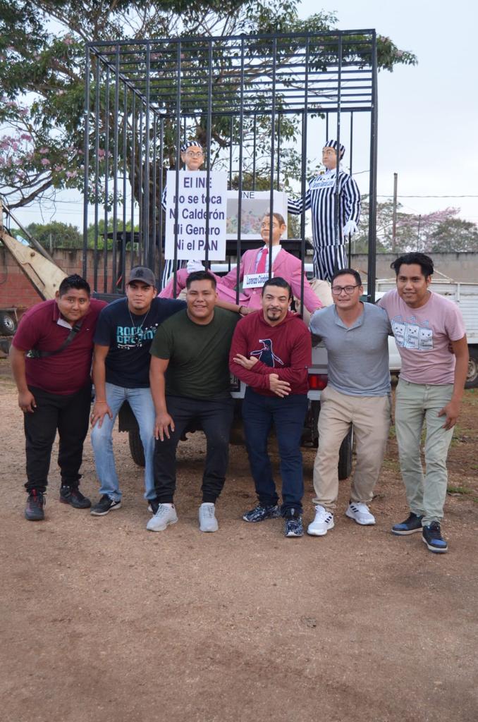 Dichos personajes, creados por los mismos pobladores, son desplazados en una jaula a bordo de la plataforma de una camioneta, en alusión a una cárcel, donde la caracterizaron con una urna y una bolsa con el símbolo de dinero, donde se resume la exigencia de millones de mexicanos que piden se les aplique todo el peso de la ley.