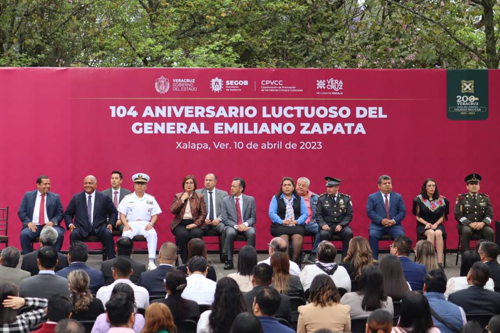 En el marco del 104 Aniversario Luctuoso del General Emiliano Zapata, la Diputada presidenta acudió a dicha ceremonia encabezada por el gobernador Cuitláhuac García Jiménez, junto a la magistrada presidenta del Poder Judicial, Lisbeth Aurelia Jiménez Aguirre; el secretario de Gobierno, Eric Cisneros Burgos, autoridades de la Marina y secretarios de las dependencias estatales, donde el secretario de la SEDARPA, Evaristo Ovando Ramírez, fue el encargado de ofrecer el discurso oficial.