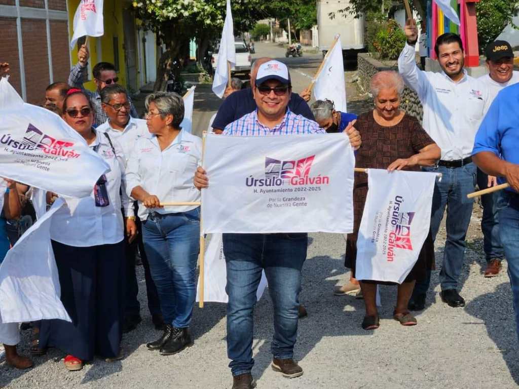 Úrsulo Galván, Ver. – La administración que encabeza el licenciado Eder Jero Hernández Lara continúa llevando obra pública a las 21 localidades del municipio; en esta ocasión, en compañía del Cabildo, el munícipe encabezó el banderazo de inicio de dos pavimentaciones, se trata de las calles Miguel Hidalgo y Bernal Diaz del Castillo.