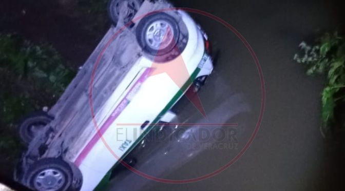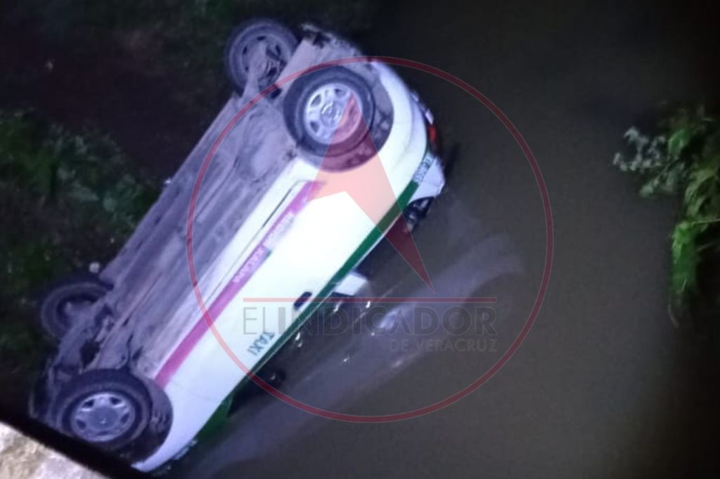 Un taxi terminó volcado en un pequeño riachuelo, cuando circulaba por el camino que comunica de Coapexpan a Rancho Viejo, la madrugada de este domingo.