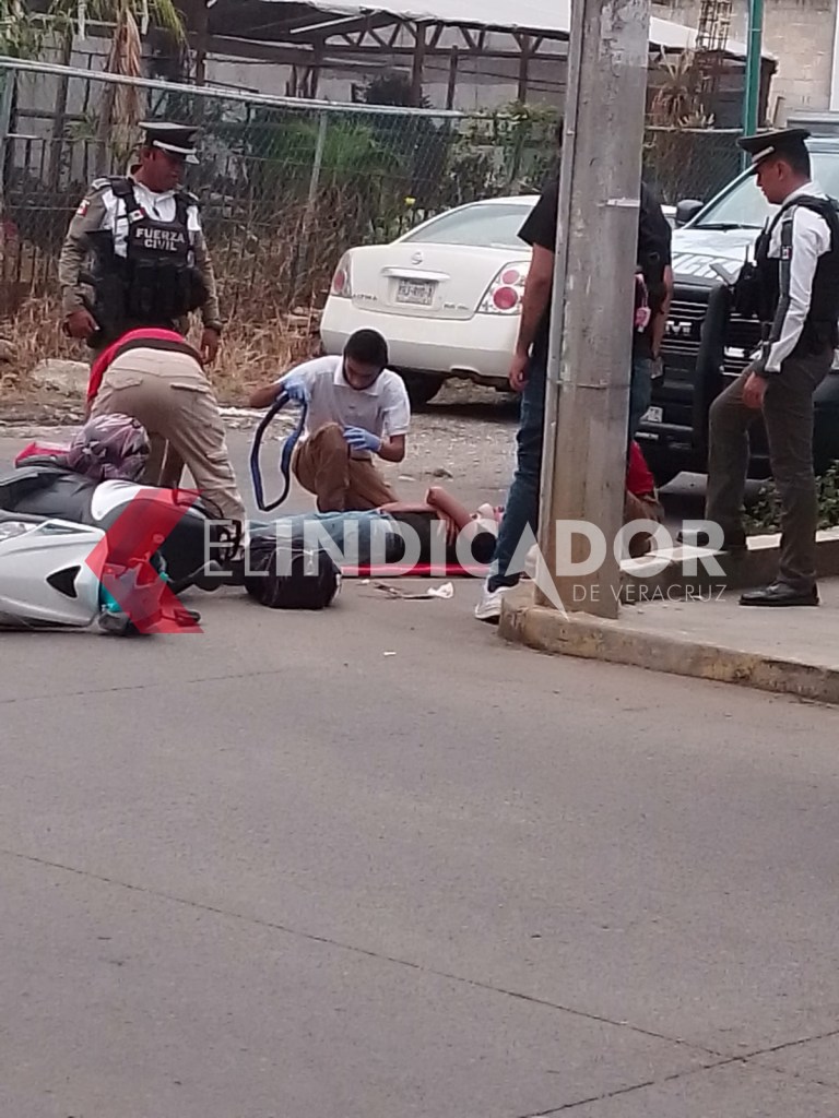 La tarde de este vienes, una joven que iba manejando su motocicleta, fue atropellada por el taxi marcado con el número económico XL-11038, sobre la calle Camino Antiguo a las Ánimas de esta Ciudad Capital.