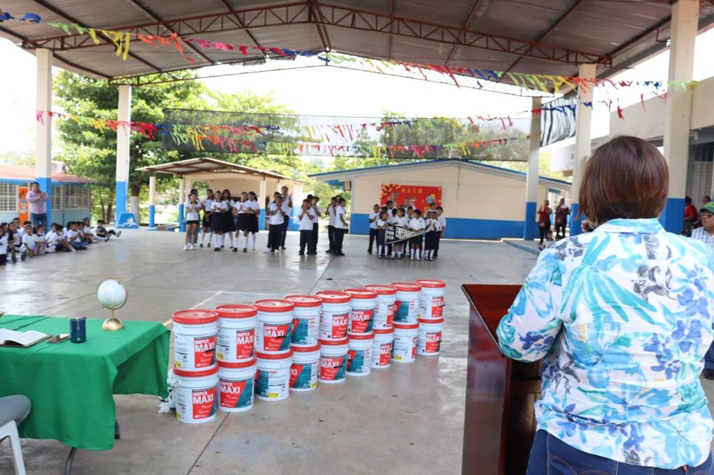 Previo a este evento, Mago Corro hizo entrega de impermeabilizante y pintura en el COBAEV 40, de la localidad de Joachín, municipio de Tierra Blanca, Veracruz.