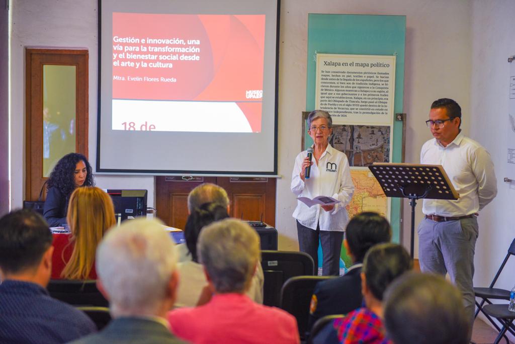 Xalapa, Ver.- En el marco del Día Internacional de los Museos, el Museo Casa Xalapa (MUXA) albergó las primeras actividades alrededor del “Encuentro de Museos», donde la maestra Evelin Flores Rueda presentó la charla “Gestión e innovación, una vía para la transformación y el bienestar social del arte y la cultura».