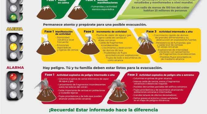La Coordinación Nacional de Protección Civil (CNPC) informó de la actualización del Semáforo Amarillo de Alertamiento a Fase 3 en el monitoreo a la actividad del volcán Popocatépetl.