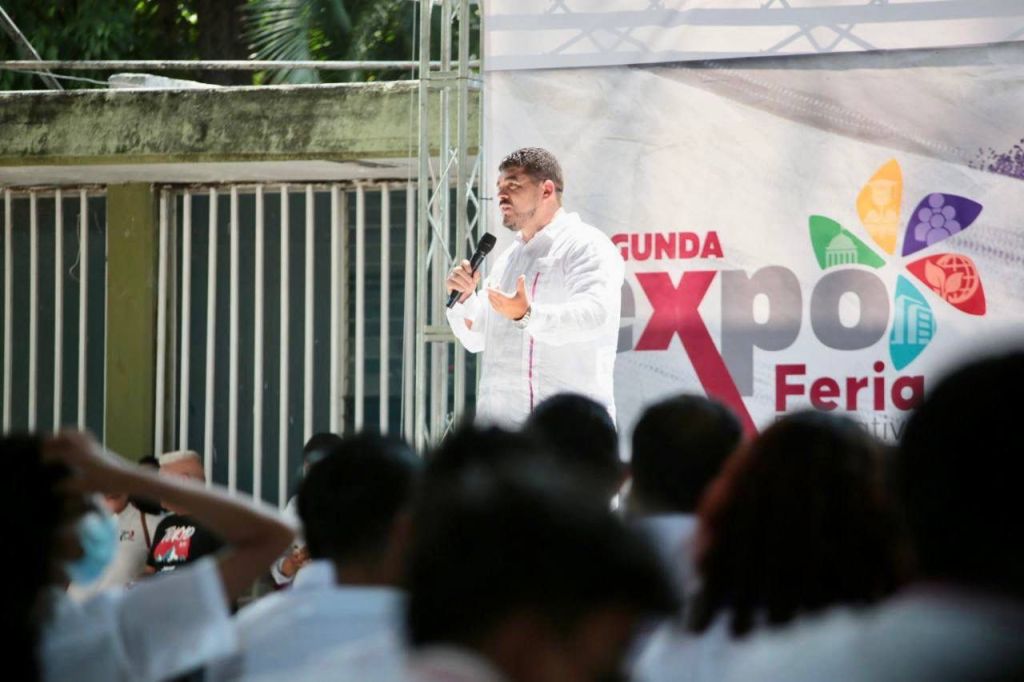 San Andrés Tuxtla, Ver., 23 de mayo de 2023.- Al participar en la 17.ª Expo Feria Educativa, Subregión San Andrés Tuxtla, el secretario de Educación de Veracruz, Zenyazen Escobar García, enfatizó que el estudio es la mejor forma de superarse en la vida, por lo que invitó a la población estudiantil a luchar y esforzarse todos los días para construir su futuro.