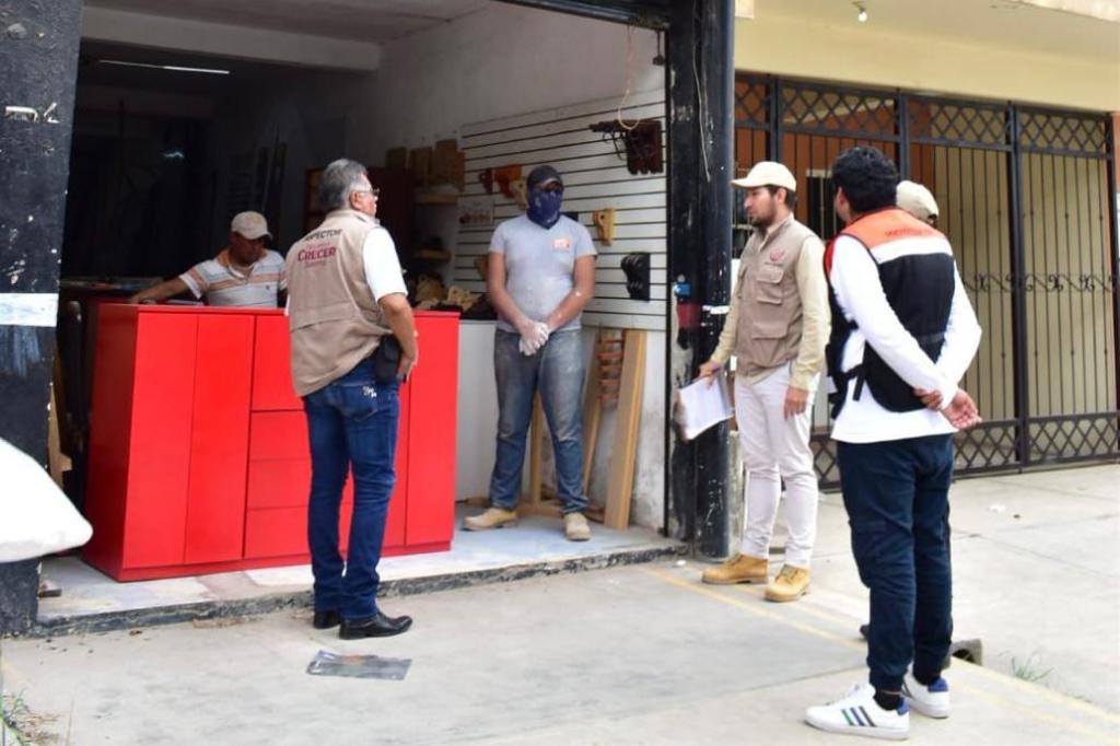 El personal del Departamento de Desarrollo Económico junto con la Oficina de Cultura Vial y la Dirección de Protección Civil, además de autoridades locales, conversaron con los comerciantes a fin de que mantengan sus productos y estructuras al interior de sus locales, liberando las banquetas para los peatones y condiciones seguras de circulación.