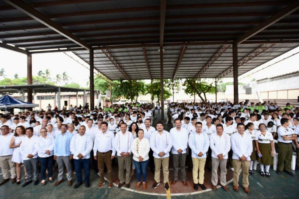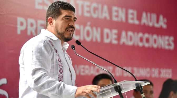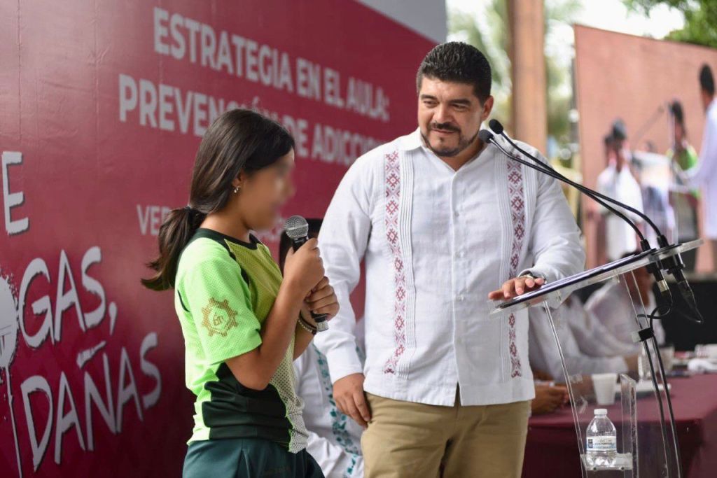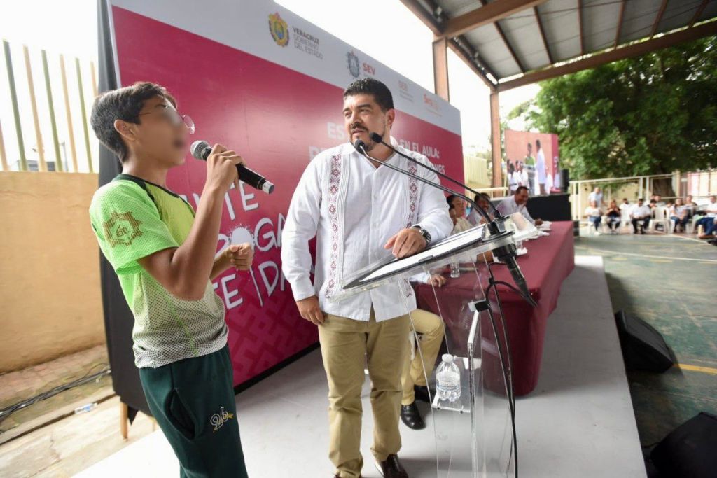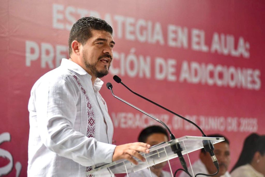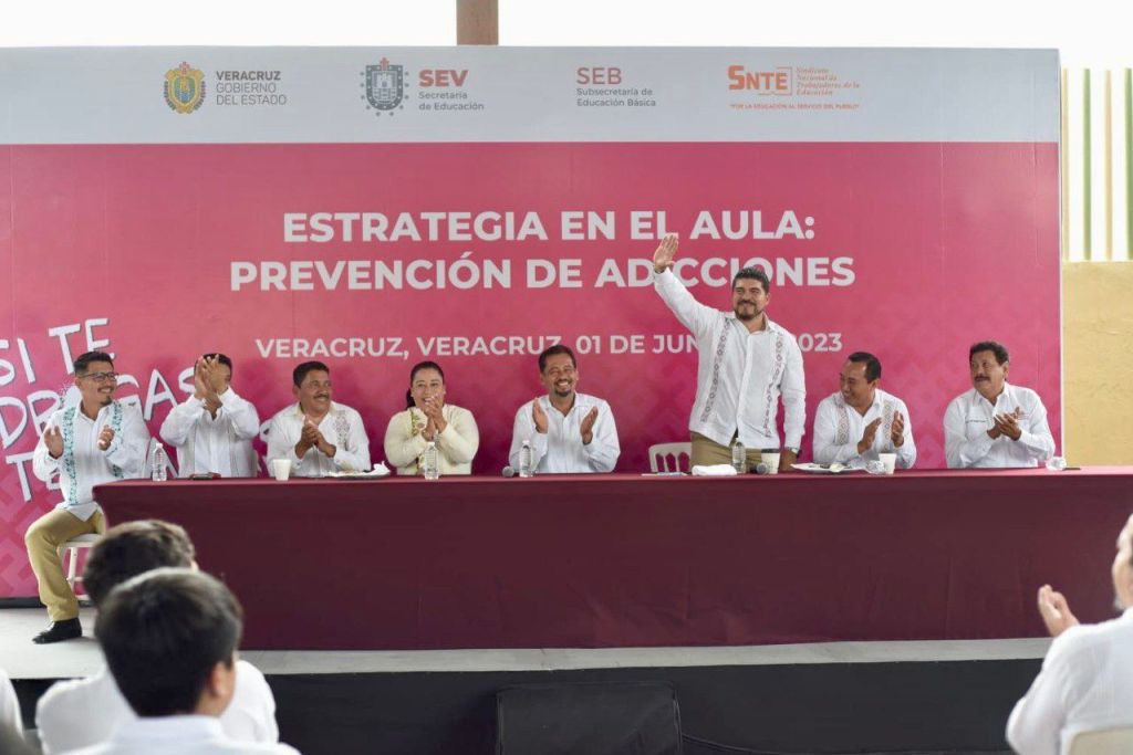 En compañía del secretario general de la Sección 32 del Sindicato Nacional de Trabajadores de la Educación (SNTE), Daniel Covarrubias López, el titular de la Secretaría de Educación de Veracruz (SEV) indicó a las y los estudiantes reunidos en el plantel el peligro que representa el fentanilo, al ser una droga sintética 50 veces más adictiva que la heroína.