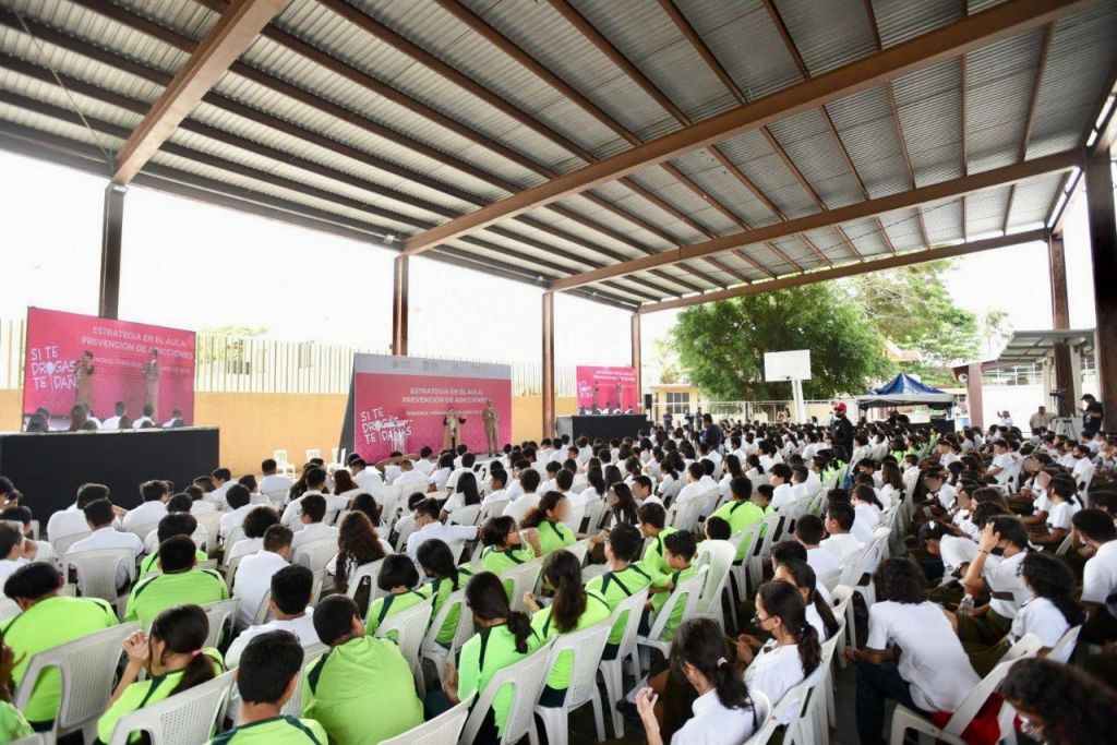 Veracruz, Ver., 1 de junio de 2023.- Para dar continuidad a la Estrategia en el aula: Prevención de Adicciones “Si te drogas, te dañas” que impulsa el gobierno federal, el secretario de Educación, Zenyazen Escobar García, acudió a la Escuela Secundaria Técnica Industrial no. 26 en esta ciudad y puerto con un mensaje para las y los jóvenes: el uso y abuso en el consumo de estupefacientes sólo tiene dos caminos, la cárcel o la muerte.