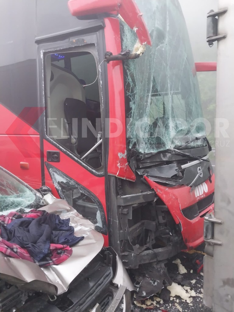 Aparatoso accidente se registró la tarde de este viernes sobre la carretera 140, en el libramiento Banderilla – Xalapa, antes del túnel, en el que se vieron involucrados, según las corporaciones de rescate, 3 automóviles particulares, 2 trailers y un autobús de pasajeros.