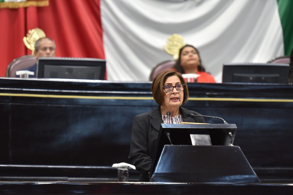 Tras la recepción del y la titular de los poderes Ejecutivo y Judicial, así como de la galardonada, por parte de las comisiones de cortesía, fue entonado el Himno Nacional mexicano y posteriormente, en el uso de la voz, la presidenta de la Mesa Directiva, diputada Margarita Corro Mendoza, dio la bienvenida a todas y todos, puntualizando que este acto invita a la reflexión para dimensionar la trascendencia de las acciones u omisiones, pasadas y presentes, de cara a las generaciones venideras.