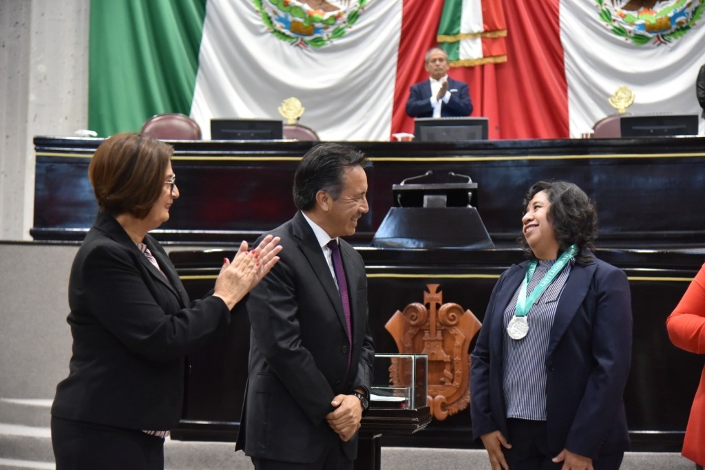 En Sesión Solemne, los tres poderes del Estado de Veracruz de Ignacio de la Llave reconocieron con el Premio al Mérito por la Defensa y Mejora del Medio Ambiente 2023 a la doctora Fabiola Sandoval Salas, por su trabajo en proyectos que impactan en la reducción de gases de efecto invernadero, su labor docente y de investigación, desarrollo y transferencia de tecnología en favor del medio ambiente.